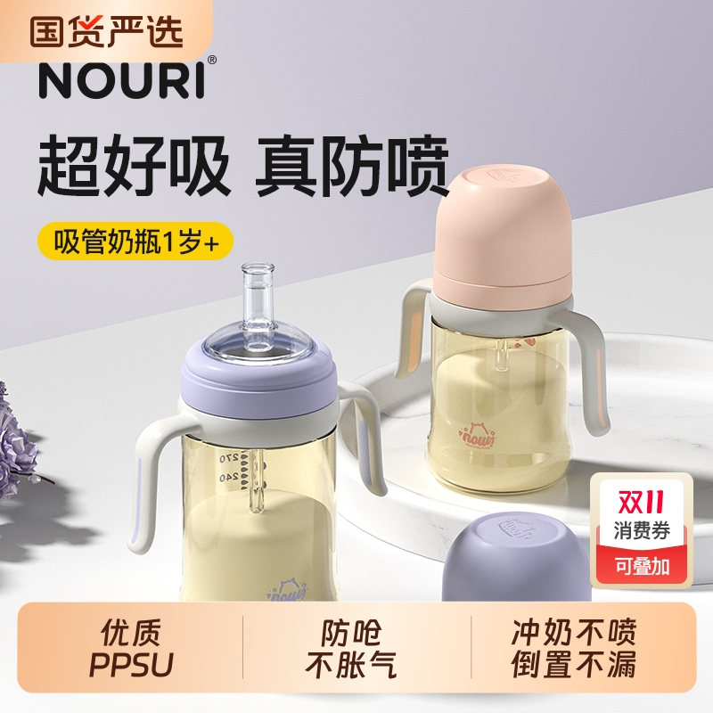 NOURI吸管奶瓶1岁以上1岁2岁大宝宝学饮杯儿童喝奶防摔直饮杯