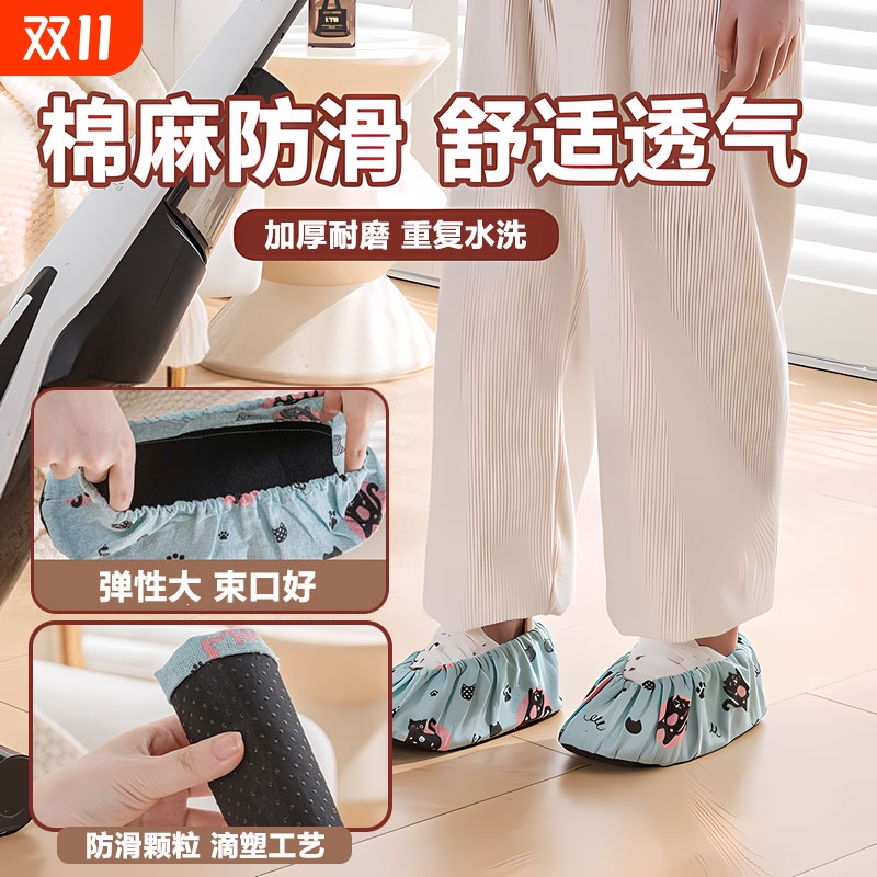 加厚耐磨防滑鞋套脚套家用室内布料反复使用成人学生儿童薄款拖鞋