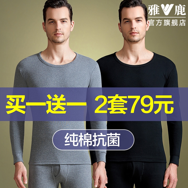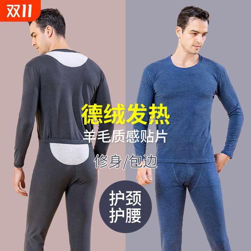 羊毛蚕丝男士德绒保暖内衣套装护腰加厚秋冬季秋衣秋裤男黑色贴身