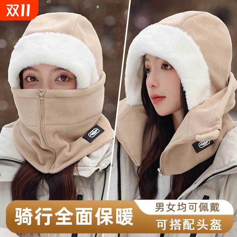 帽子女秋冬季骑车保暖东北防风防寒神器电动车骑行装备面罩一体男