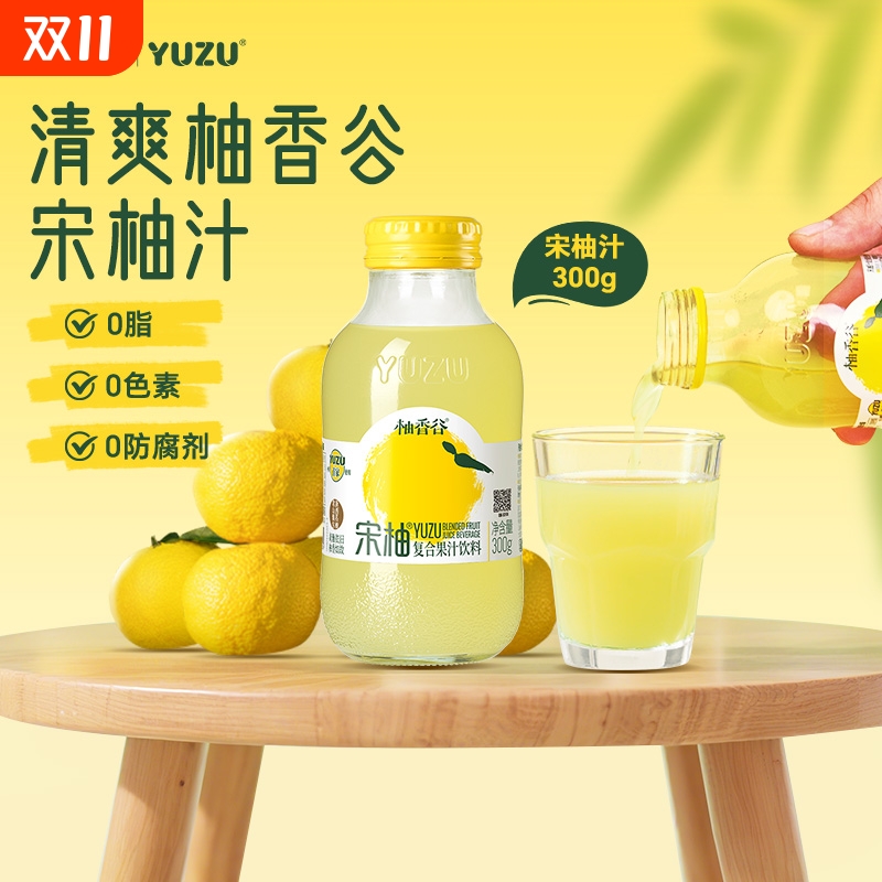 柚香谷双柚汁宋常山胡柚子果汁饮料饮品清爽解腻300g整箱瓶装罐装