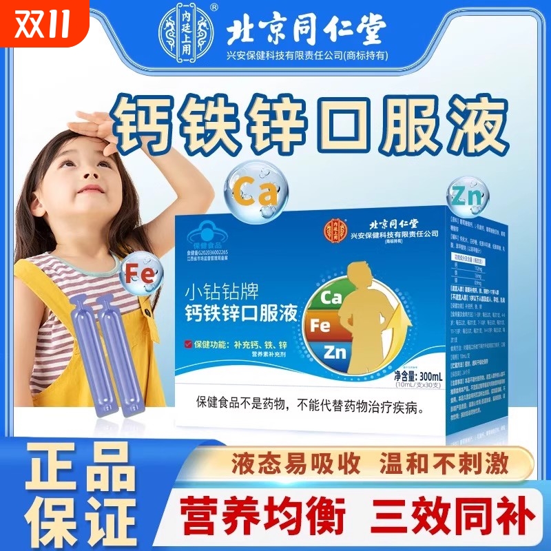 钙铁锌口服液乳碳酸钙补铁锌儿童学生青少年成长免疫力葡萄糖Z24