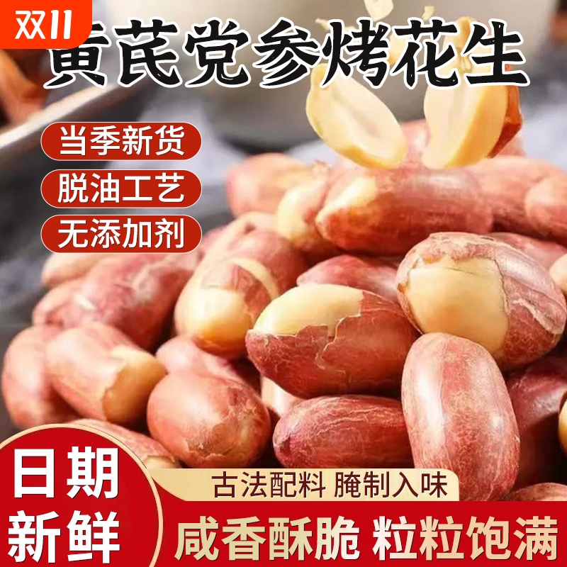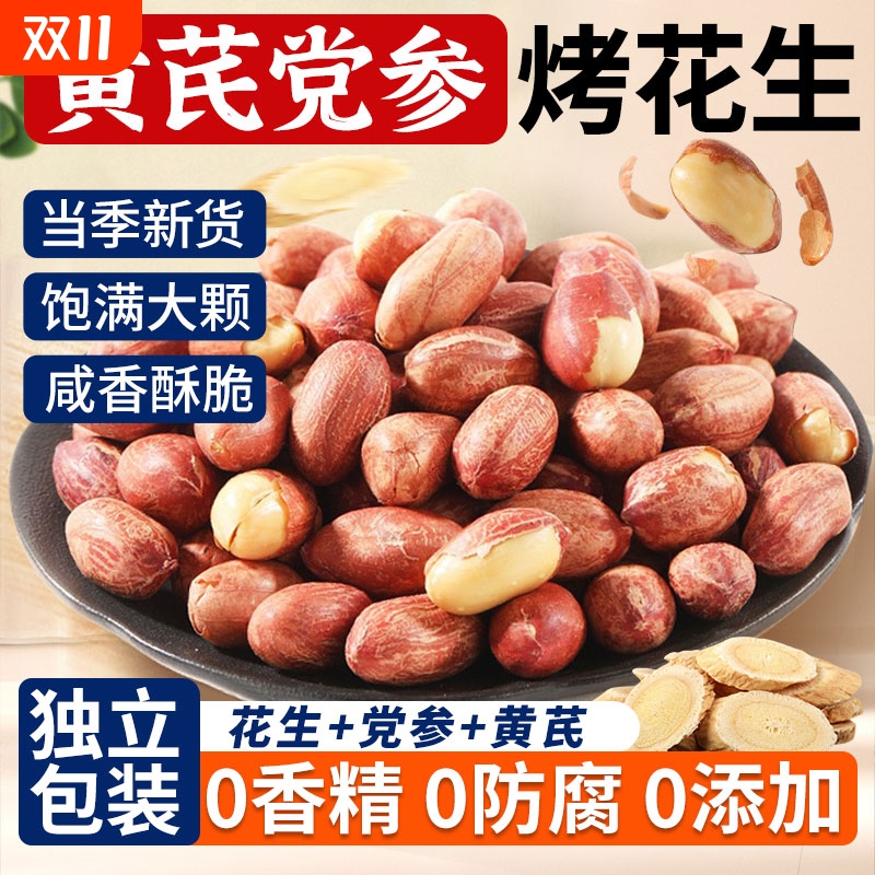正宗五香黄芪党参烤花生米下酒菜红皮脱油花生即食炒货类休闲零食