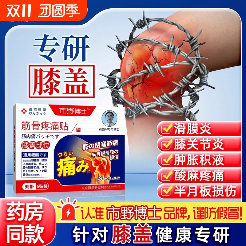市野医生筋骨疼痛贴膝盖贴腰腿理疗膝关节加热治疗贴野膏药支撑