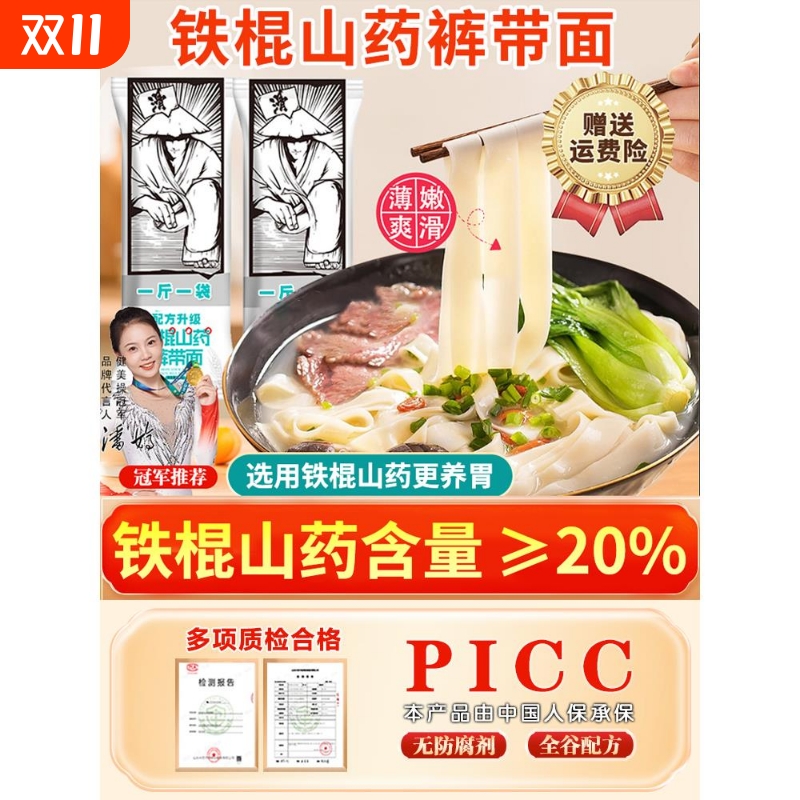 茯苓薏米铁棍山药挂面龙须面面条10斤龙须批发整箱官方旗舰店养胃