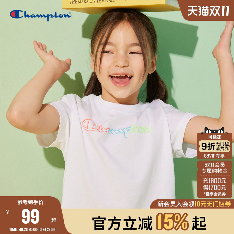 champion冠军儿童装25夏季新款女大小童时尚个性logo印