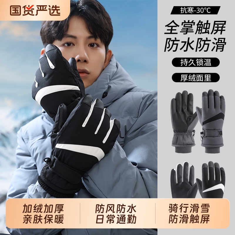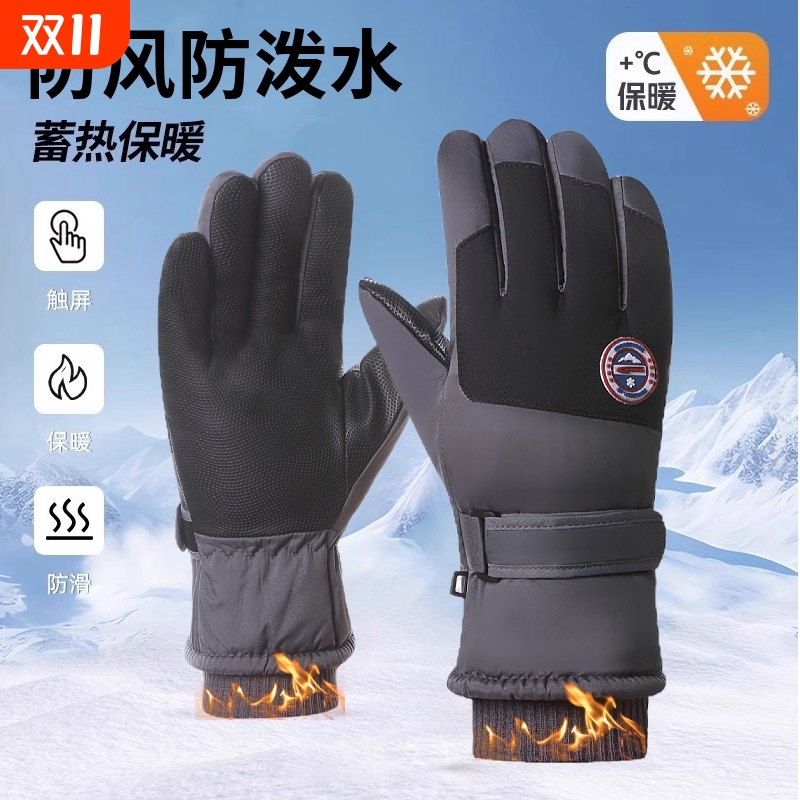 滑雪手套男款冬季可触屏加绒加厚保暖防寒骑行防风防水女冬天户外