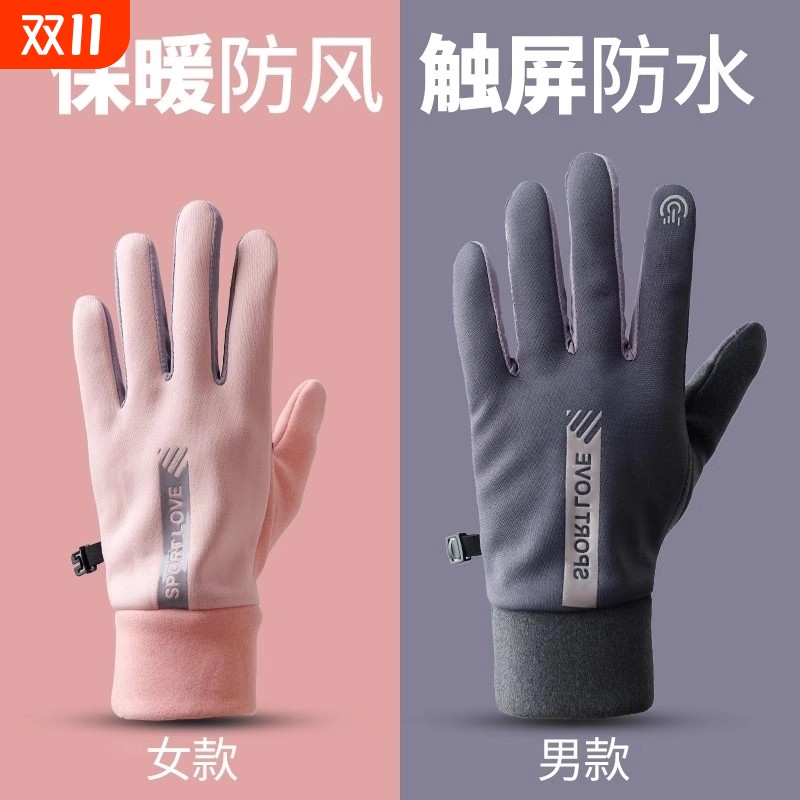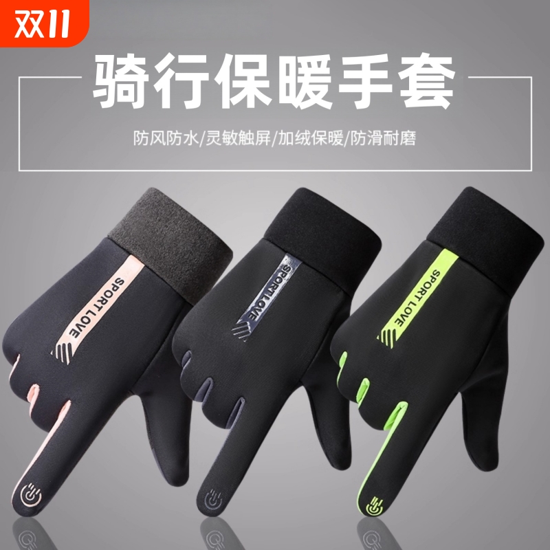 骑行手套外卖男女冬季加绒保暖防风防水防寒触屏自行车全指户外