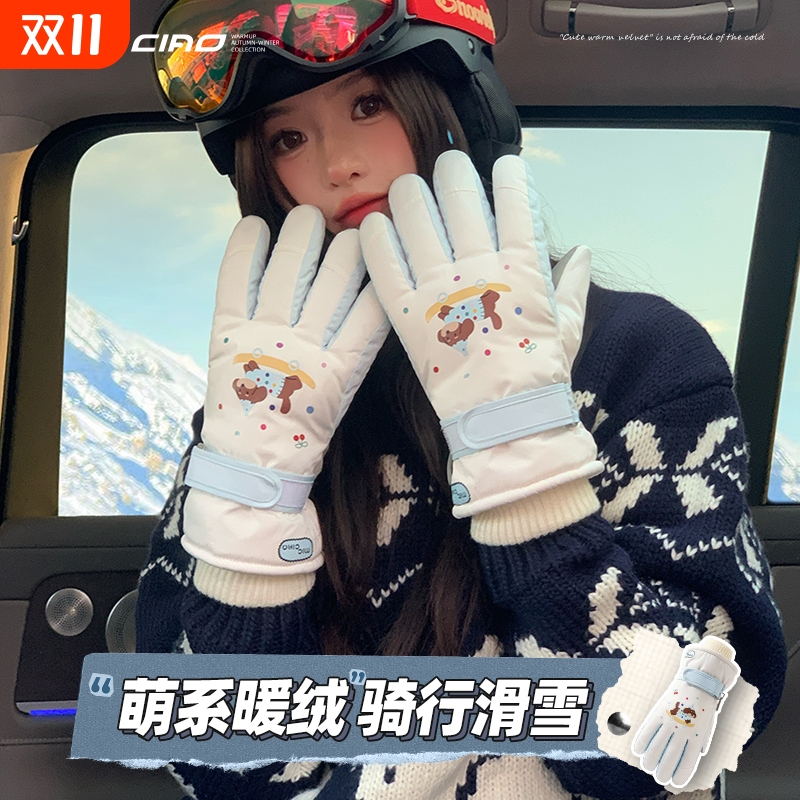 骆驼女保暖加绒户外骑行手套