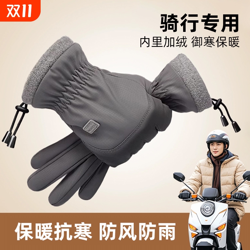 保暖手套冬季骑行男女士电动摩托车防风防寒防水滑雪加绒厚棉触屏