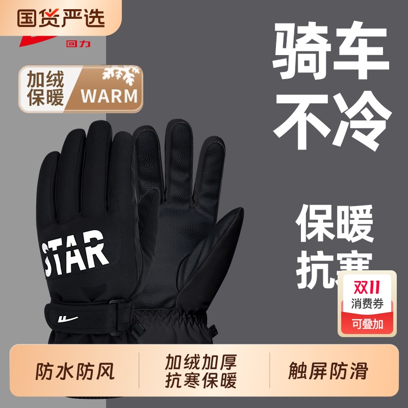 回力滑雪手套冬保暖防寒男户外骑行防滑可触屏女加绒加厚防风防水