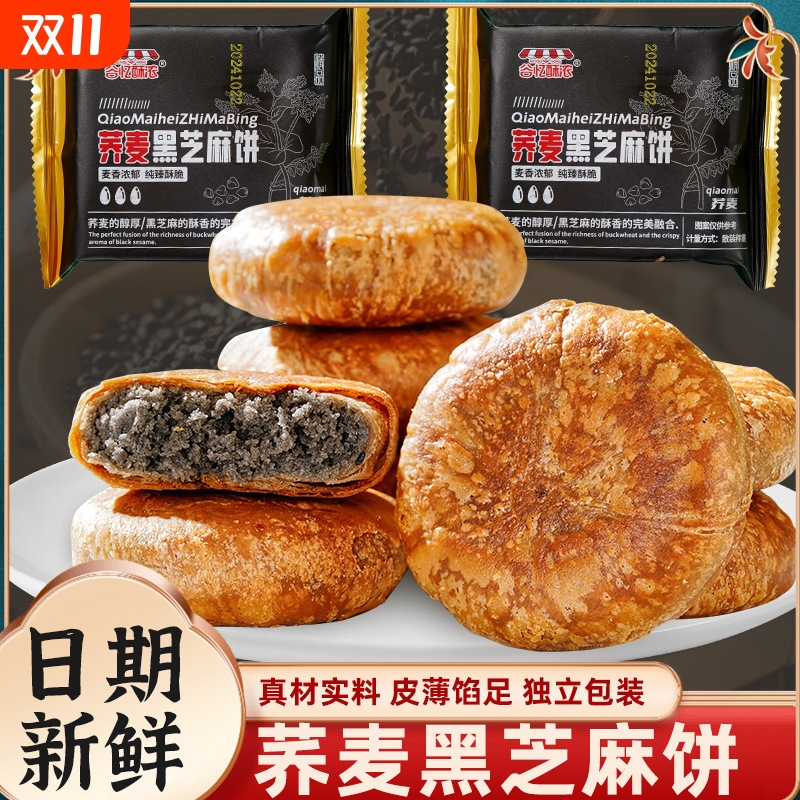 荞麦黑芝麻饼无加蔗糖掉渣酥饼馅休闲零食小吃老婆饼传统糕点