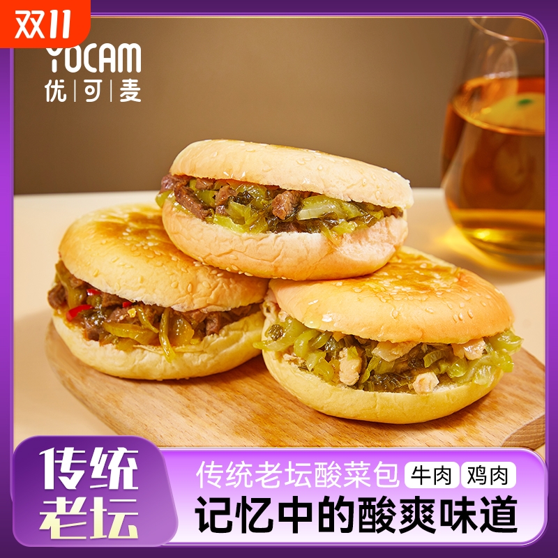 新品优可麦速食汉堡老坛酸菜加热即食面包牛肉鸡肉香辣堡微波早餐