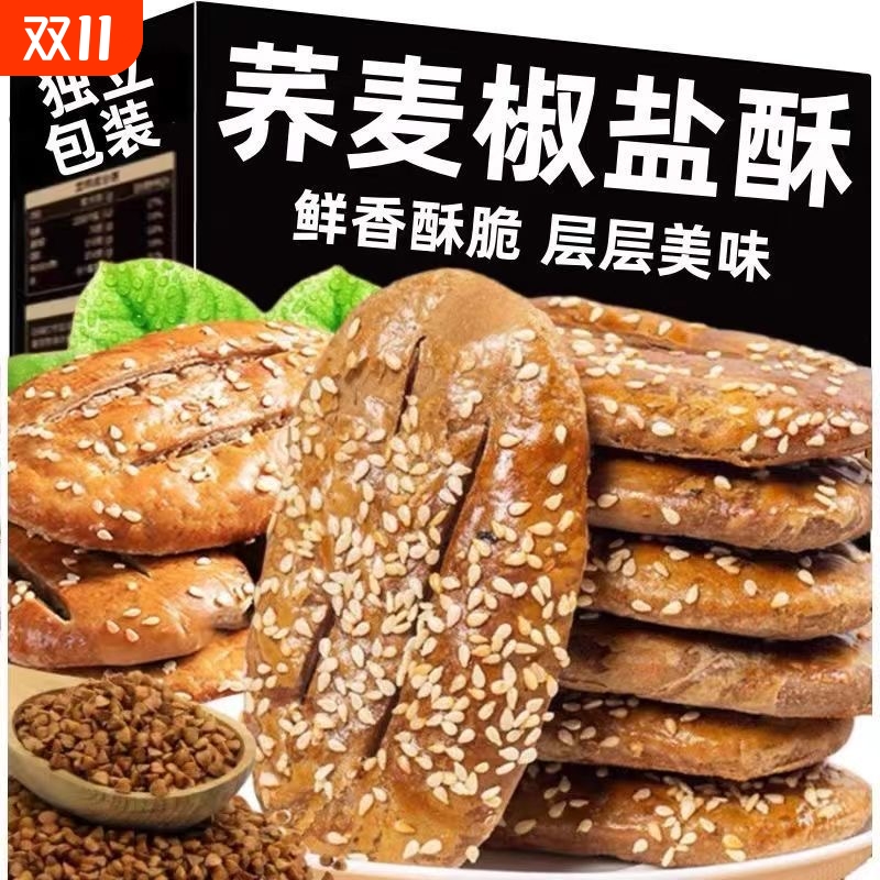 荞麦椒盐酥无加中老年人儿童早餐代餐传统老式牛舌饼咸味饼干粗粮