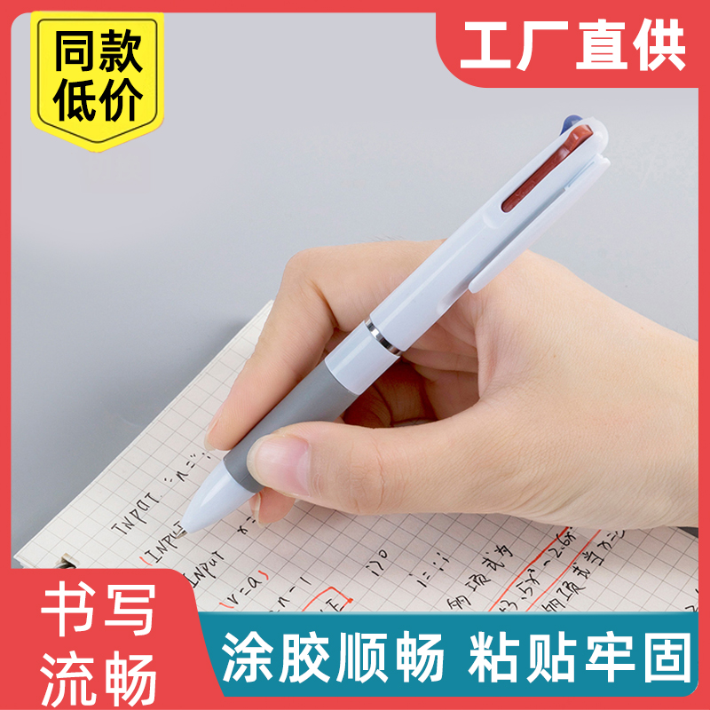 学生用多功能三色原子多彩色笔三色圆珠笔按动式3色红蓝黑色油笔