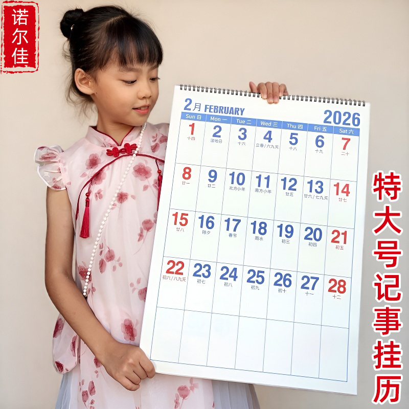 挂历2026年特大号简约大格子记事