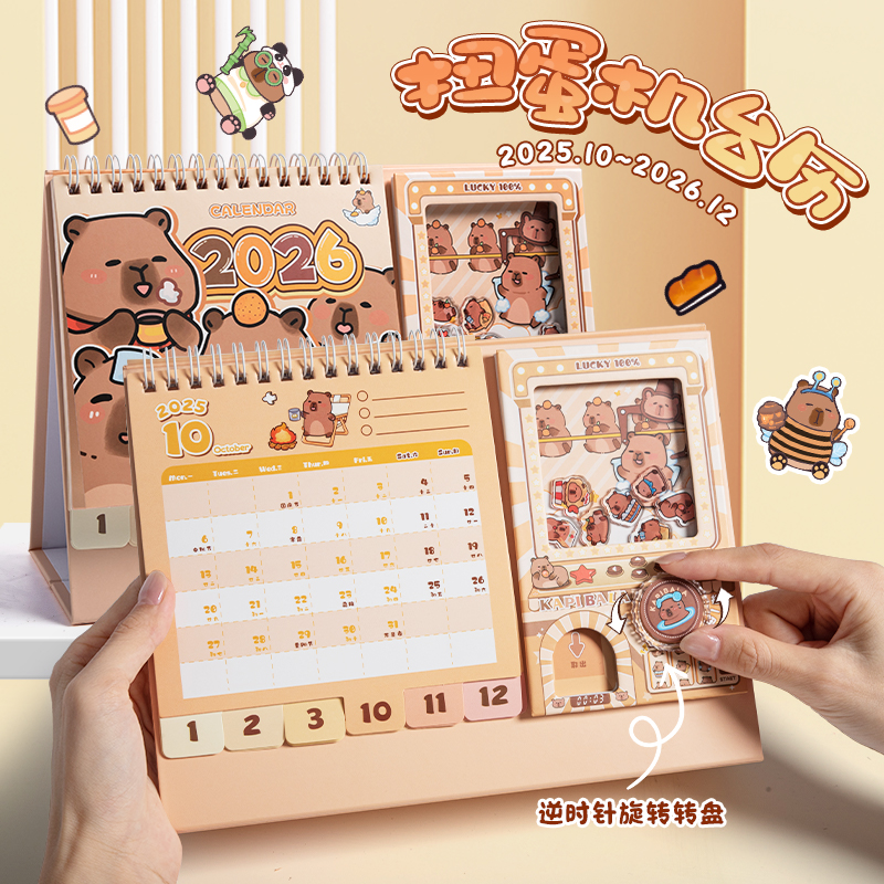 扭蛋机台历2026年办公室桌面摆件
