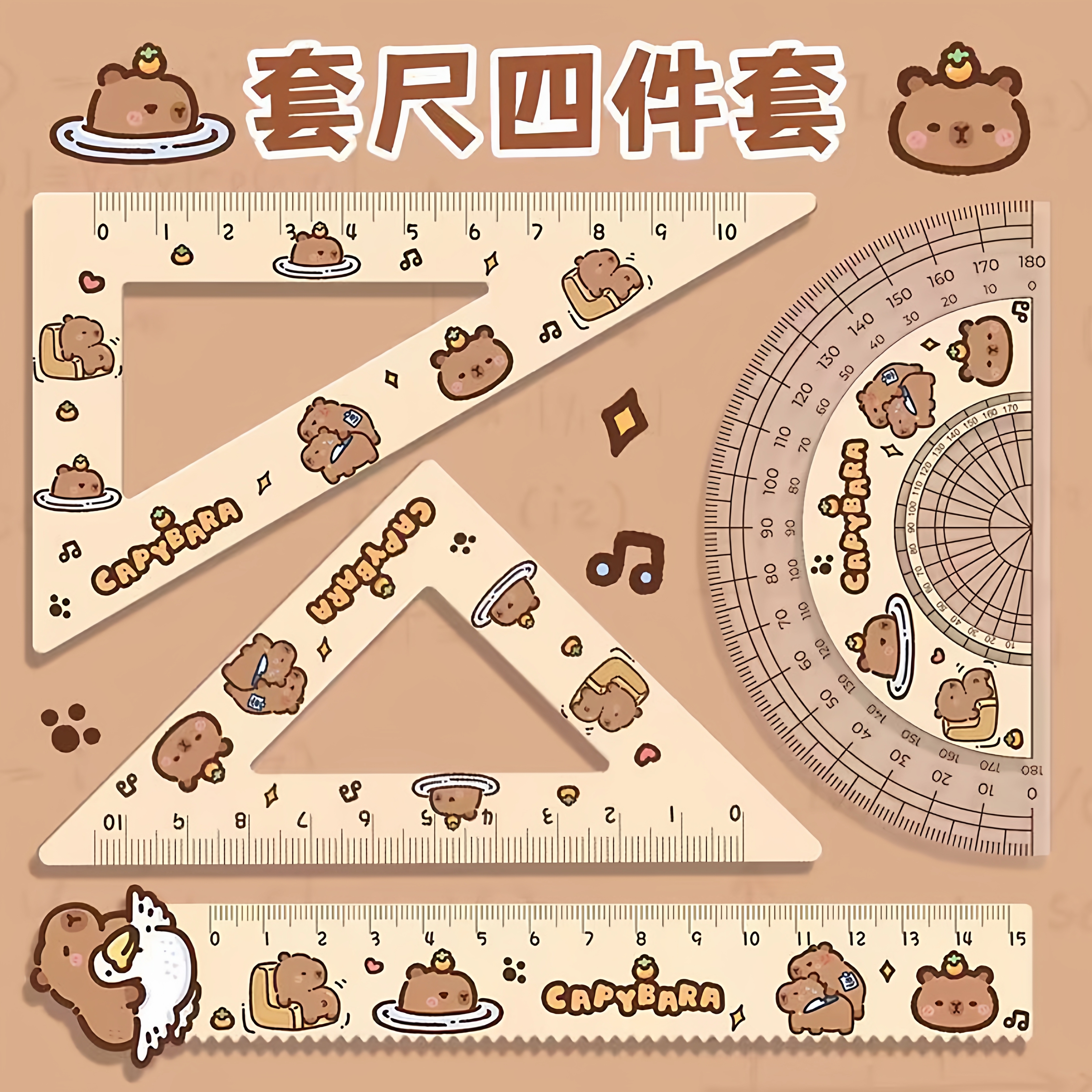 水豚卡皮巴拉尺子套装小学生专用套尺一年级二年级用品高颜值波浪尺1