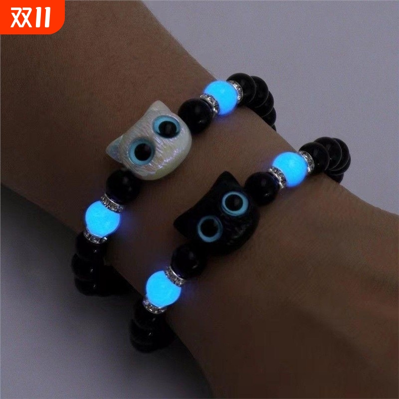 夜光原创可爱奶酪呆萌小猫咪手串发光黑白手链情侣手链送礼物