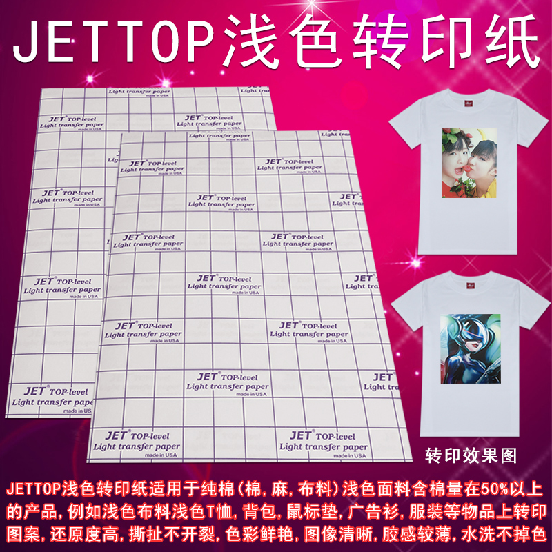 新品上市美国原装JETTOP纯棉浅色面料热转印纸 烫画纸图层薄