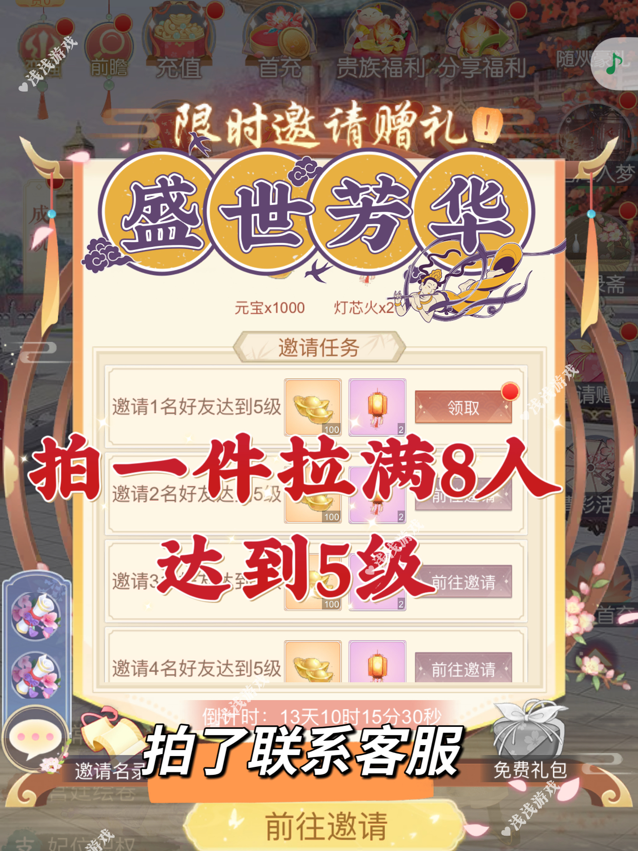 盛世芳华 微信小程序邀请好友新用户 拍1邀请8人 秒发货送兑换码
