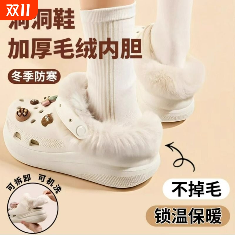 洞洞鞋毛绒棉内胆冬适配crocs卡骆驰加绒冬天可拆卸泡芙冬季保暖