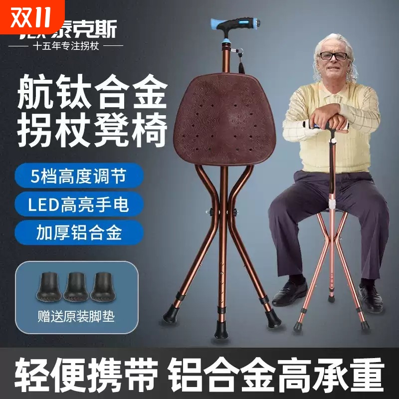【顺丰包邮】老人便携折叠拐杖凳