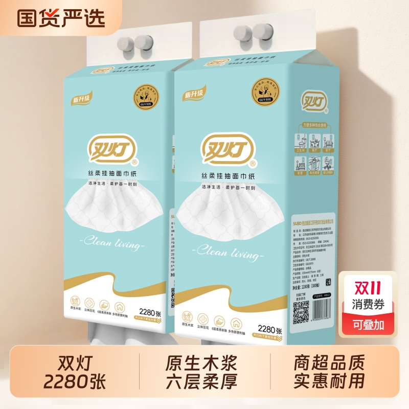 双灯丝柔挂抽面巾纸6层加厚2280张母婴可用纸巾悬挂式厕纸卫生纸
