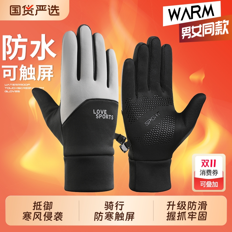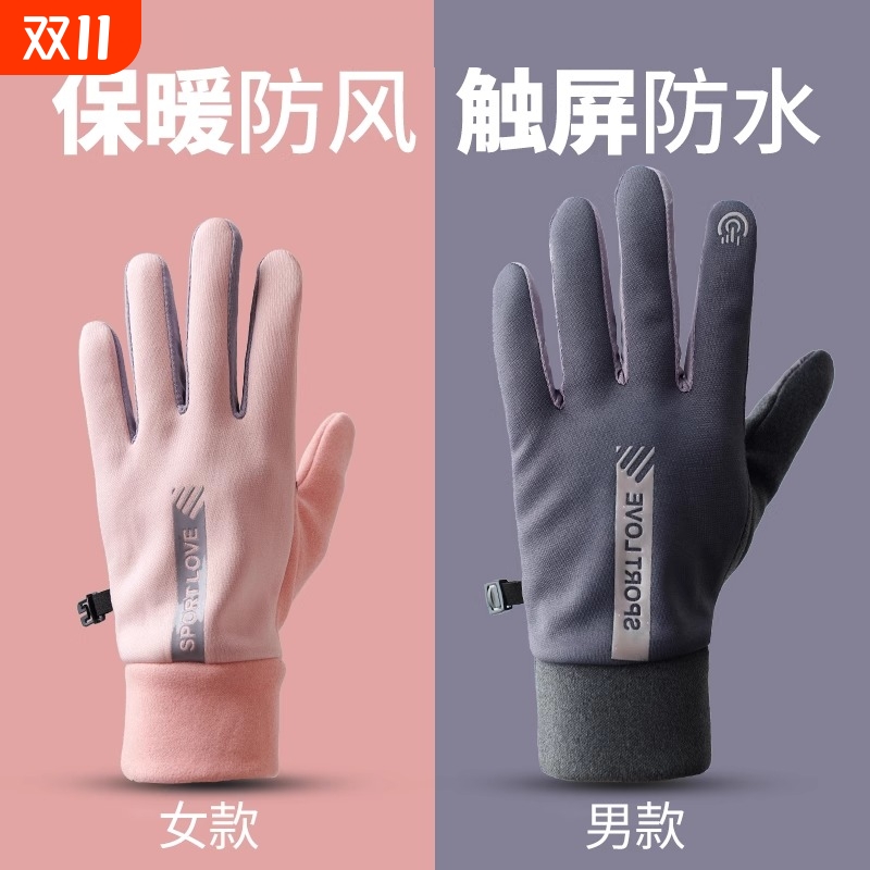 骑行手套女冬季保暖加绒防风防寒加厚可触屏电动车户外跑步手套男