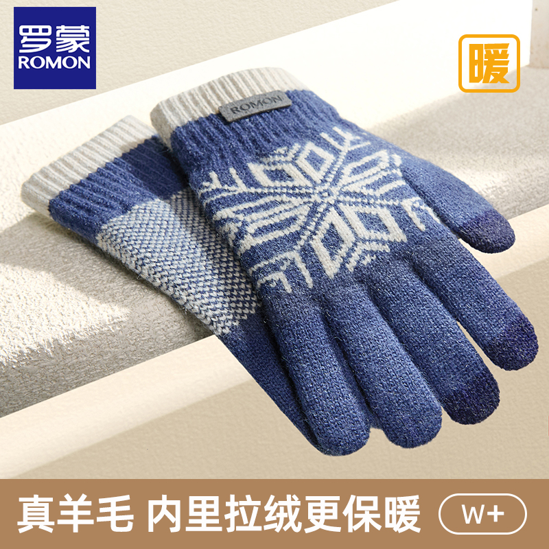 罗蒙手套男士冬季户外保暖加厚骑行车可触屏毛线针织棉手套学生ND