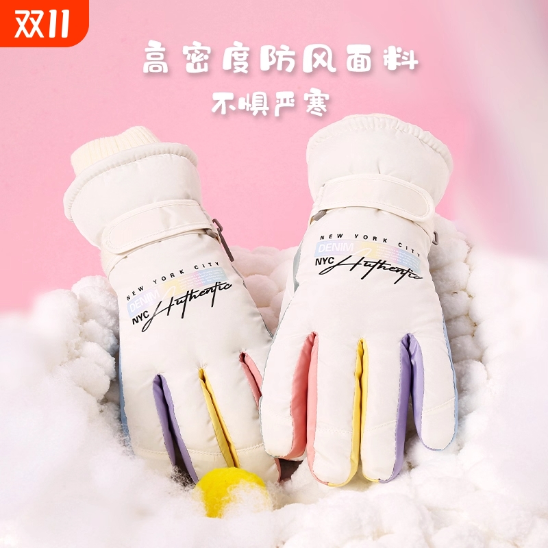 彩虹滑雪手套2025新款女冬季保暖加厚棉防寒可触屏骑行防风冬日