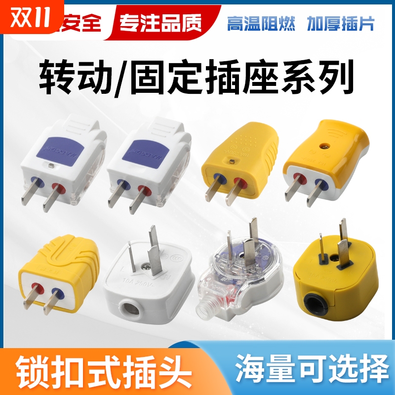 纯铜插头二脚加厚纯铜大功率耐摔高温二合一可转动可锁住通用插头
