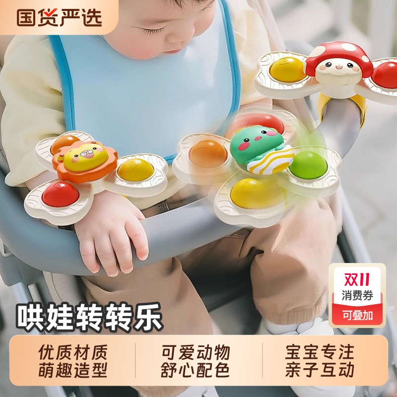 婴幼儿吸盘转转乐宝宝安抚摇铃玩具0-1岁3可啃咬陀螺卡通儿童哄娃
