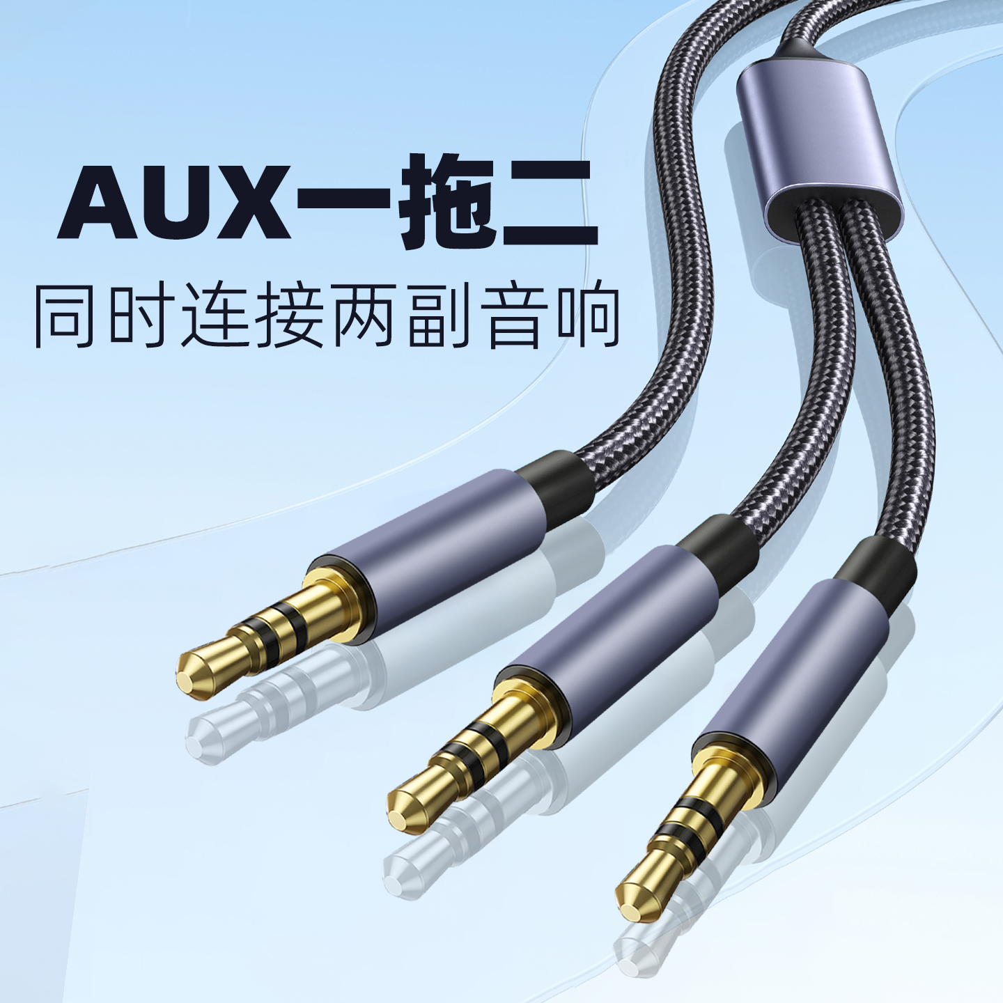 AUX音频线3.5mm一分二电脑手机同时连接2个音响音箱专用连接
