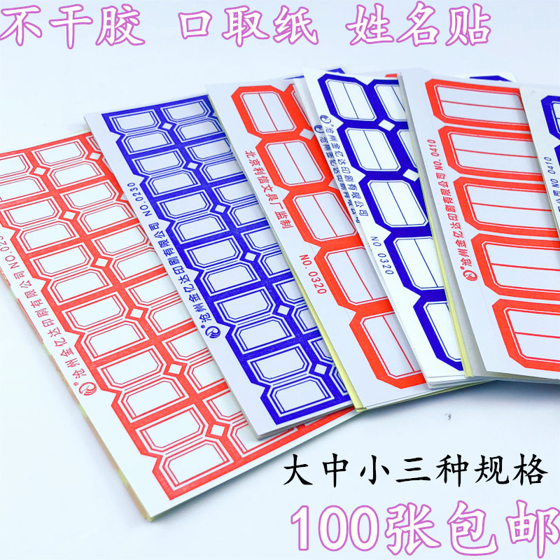 口取纸 中号 口曲纸 标签纸 不干胶标签纸 红色 蓝色学生名字贴