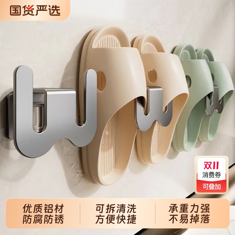 浴室拖鞋架免打孔壁挂卫生间置物架厕所沥水门后收纳挂架神器承重