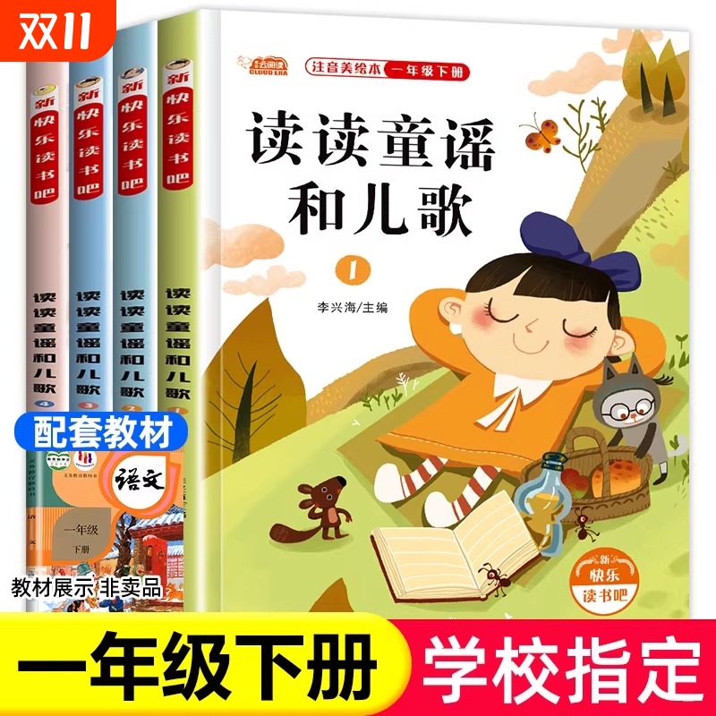 读读童谣和儿歌一年级下册全套4册 快乐读书吧注音版课外推荐必读阅
