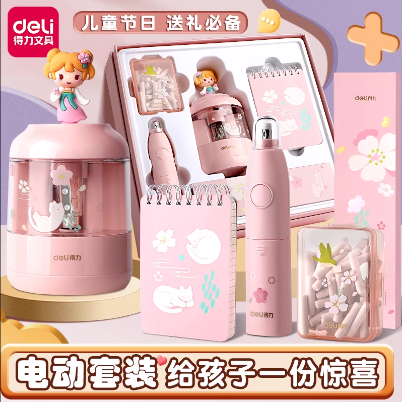 得力电动文具套装女孩生日礼物幼升小暑假礼盒开学大礼包小学一二