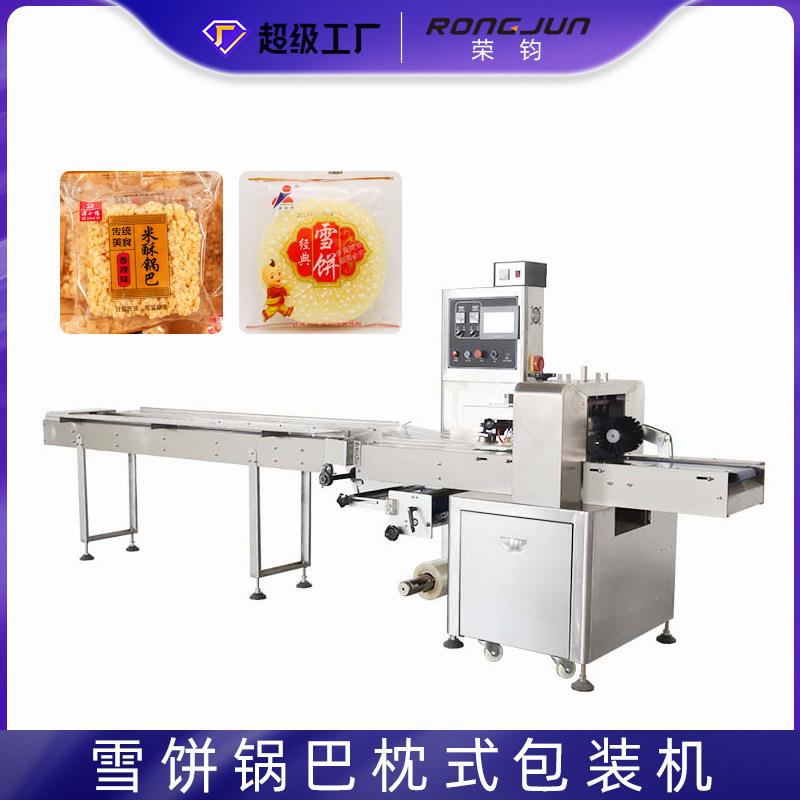 多功能绿豆饼锅巴雪饼全自动高速卷膜上下走膜三伺服枕式包装机