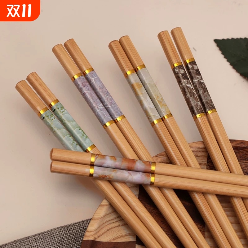 健康楠竹筷子家用高档5-10双装成人防霉防滑竹木筷子家庭装分餐筷