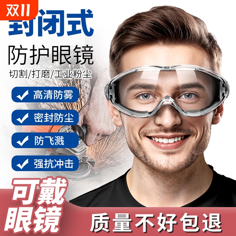 护目镜防灰尘不起雾劳保防飞溅可戴眼镜打磨切割镜防风沙防尘护眼