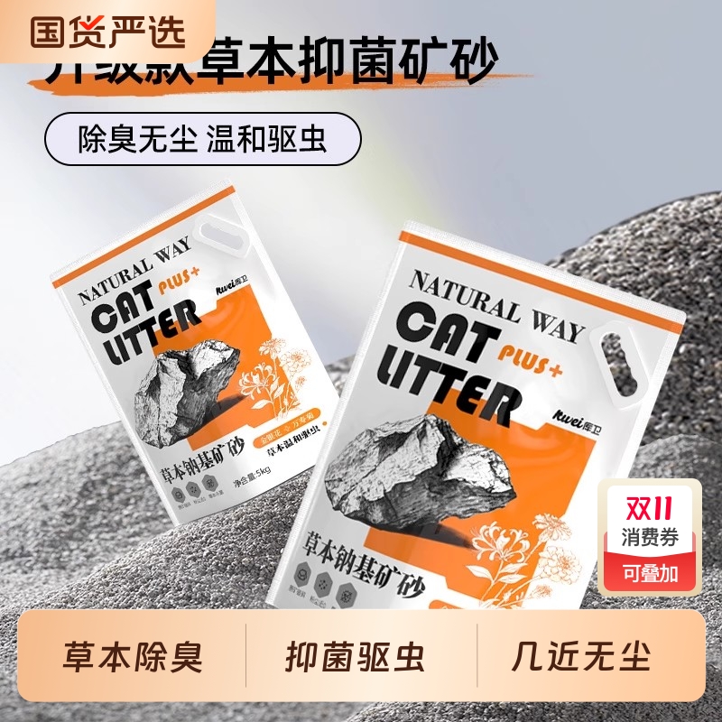 库卫天然钠基矿砂活性炭除臭无尘夏天幼猫专用抑菌猫砂20不粘底