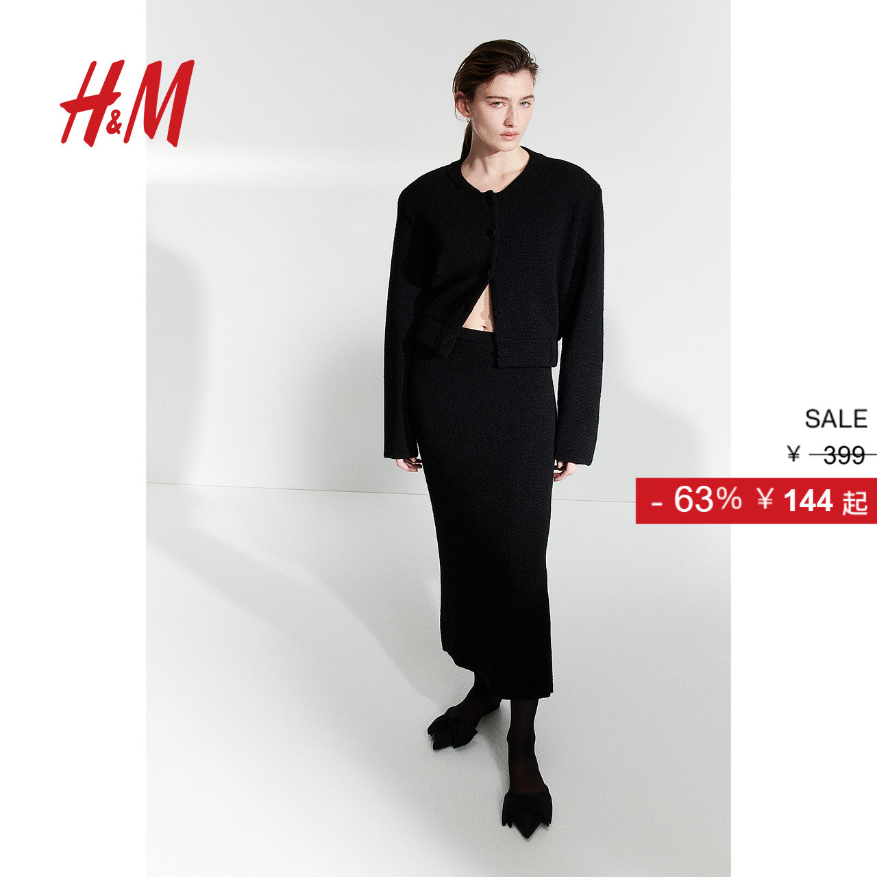 HM女装短外套秋季短款重磅千金小香风外套打底开衫1236229