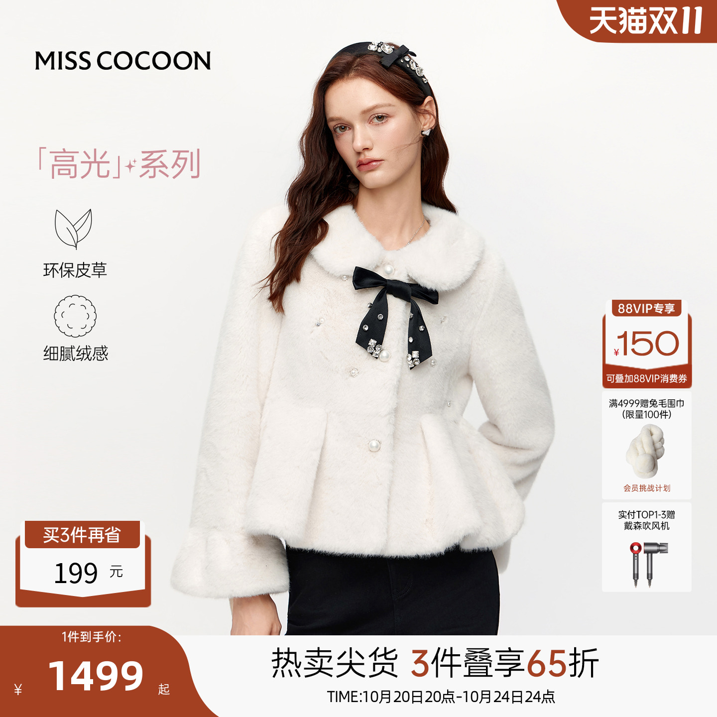 MISSCOCOON可可尼白色外套女2025冬季新款千金风娃娃领