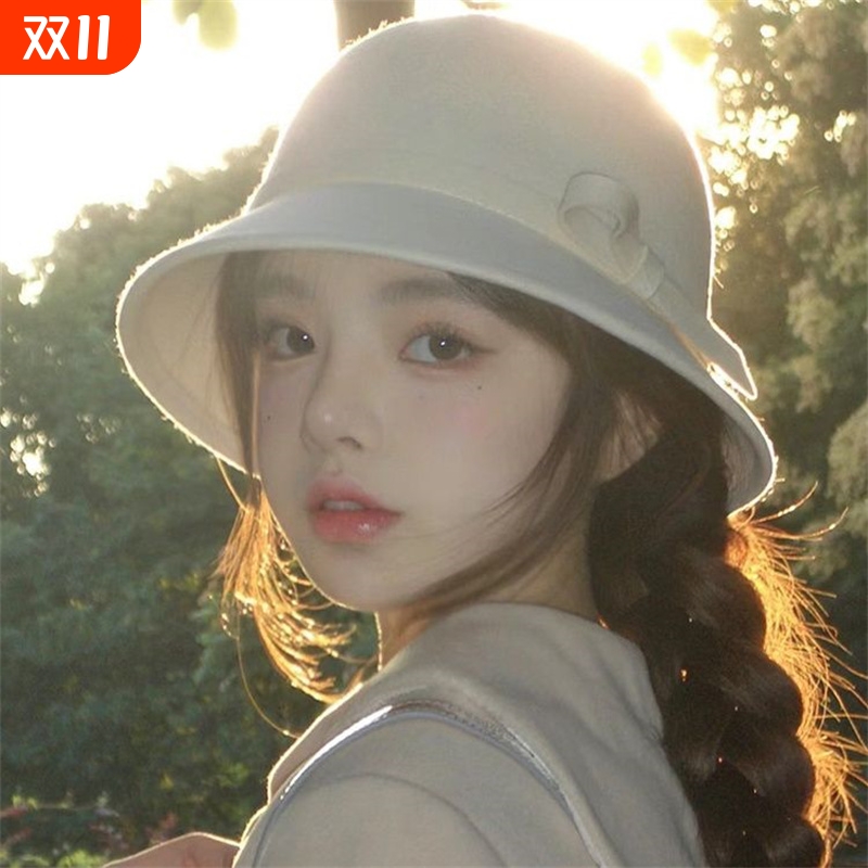 赫本风千金毛呢渔夫帽子女秋冬款法式复古名媛风优雅礼帽气质盆帽