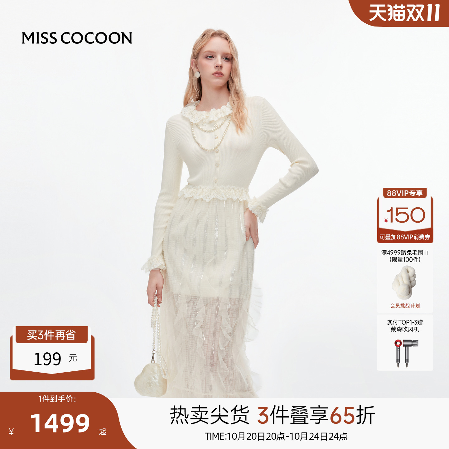 MISSCOCOON可可尼长袖裙子女2025秋季新款千金小香风拼