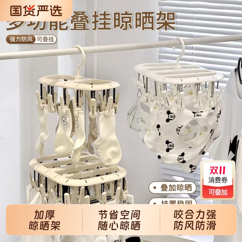 可折叠晾衣架新款多夹子多功能衣架袜子晾晒架阳台晒内衣挂袜子架