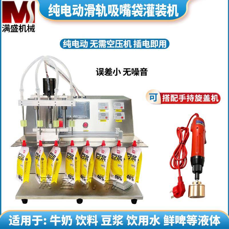 2.5L四头纯电动滑轨自立袋灌装机豆浆牛奶鲜牛奶茶果汁饮料多用