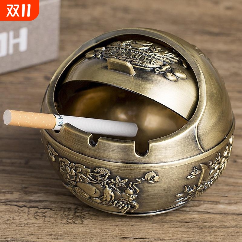 球形金属烟灰缸带盖创意个性酒店商用防风大象金蟾龙龟卧室办公室