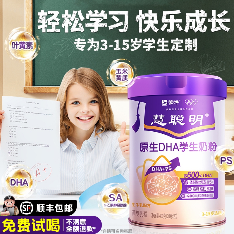 蒙牛高钙高锌学生奶粉800g青少年营养早餐食品牛奶粉成长助力配方